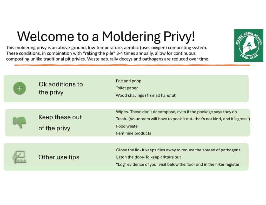 New to campsite maintenance or need a refresher on the different aspects of campsite maintenance? Here’s a slide presentation that outlines the basics. ATC also has a video outlining maintenance tasks for facilities.
