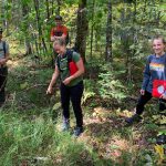 THE FALL IS AN IDEAL TIME FOR CORRIDOR MONITORING: Simon Rucker, Mike Mahony, Mary Eagan and Kayla Gagner are happy to find a boundary marker without any digging. This section of A.T. corridor is just south of Long Falls Dam road. Photo by Tony Barrett